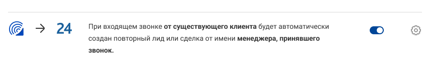 Только для исходящих: если предыдущий лид от этого клиента стал сделкой, то при звонке создаётся повторный лид. Если предыдущий лид стал контактом, то повторный лид не создается.