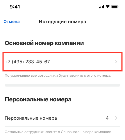 - Общего номера компании — с него будут звонить сотрудники и отделы, у которых нет персональных или региональных номеров.