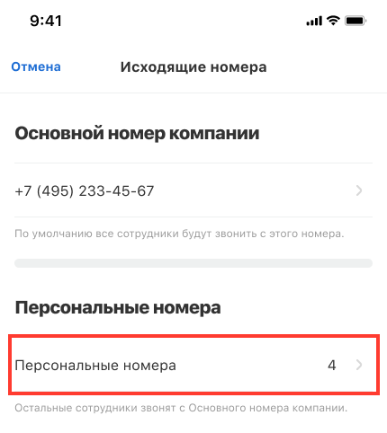 - Персональных номеров — подставляются при исходящих звонках выбранных сотрудников и отделов. Это позволяет менеджерам всегда звонить клиентам со знакомых номеров.