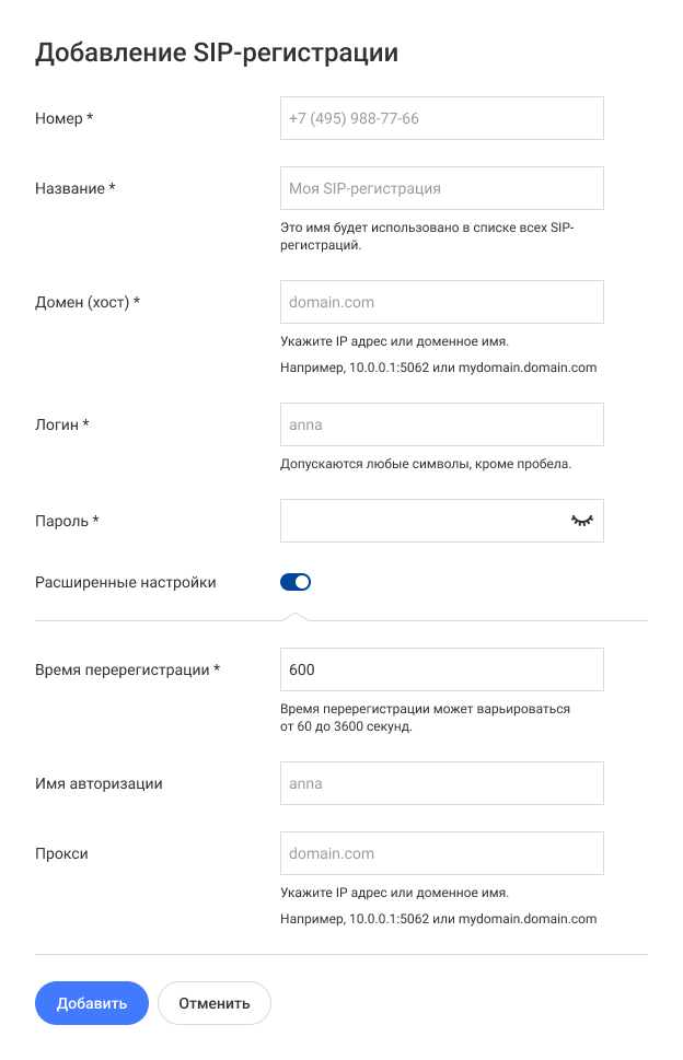 Если ваш оператор выдал вам SIP-логин, пароль и адрес сервера, выберите «SIP-регистрация». Если ваш оператор не выдал эти данные, но может переадресовать звонки на SIP URI, выберите «Переадресация номера на SIP-адрес».