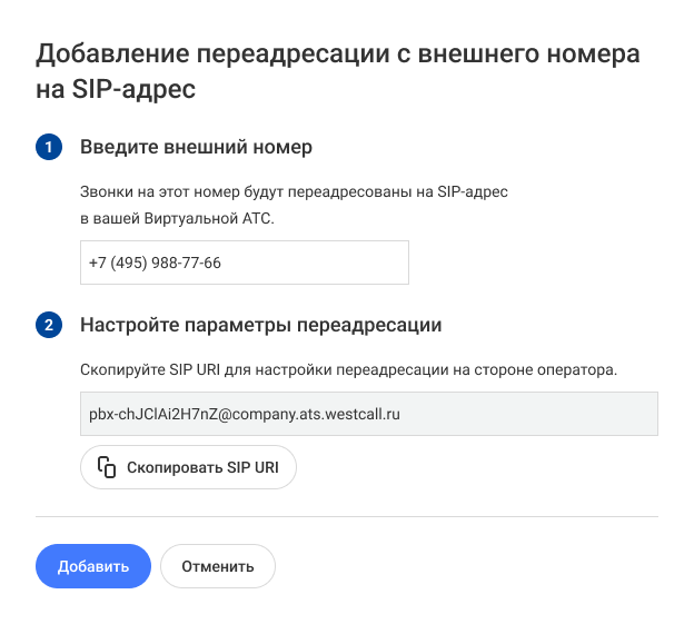2. Введите номер телефона и скопируйте полученный SIP URI.